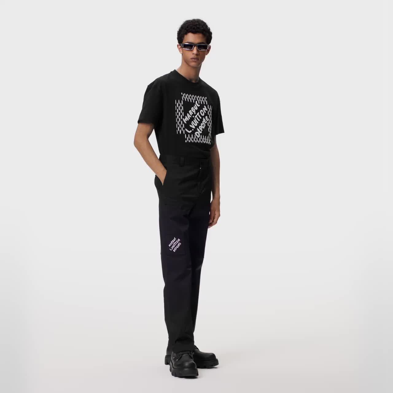 Esta calça de algodão, que pode ser usada em qualquer estação do ano, traz assinaturas elegantes em seus bolsos cargo. A perna direita apresenta um bordado contrastante da assinatura “Marque L. Vuitton déposée”, revelada no desfile Spring-Summer 24, enquanto a perna esquerda traz uma aba com a inscrição LV Plexi. Versátil, a peça compõe uma ampla gama de looks casuais do dia a dia.