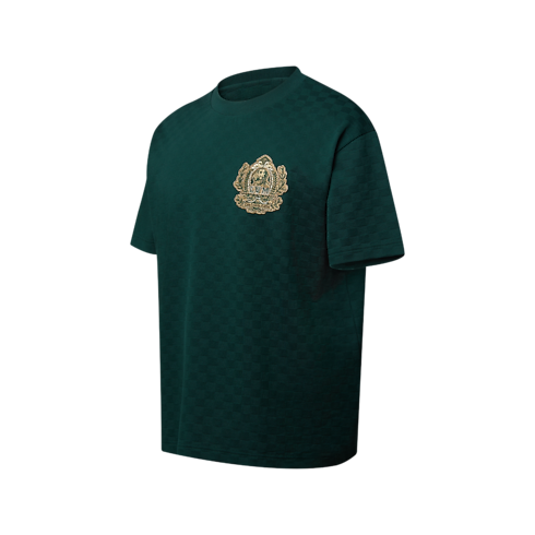 Inspirada nos passeadores de cães de Westminster, tema desta coleção, esta camiseta verde vem em algodão orgânico com o jacquard Damier Piqué texturizado. Assinado com um brasão LV Dog bordado em dourado no peito, este modelo perfeito para as festas de fim de ano combina um toque sofisticado e um design casual.