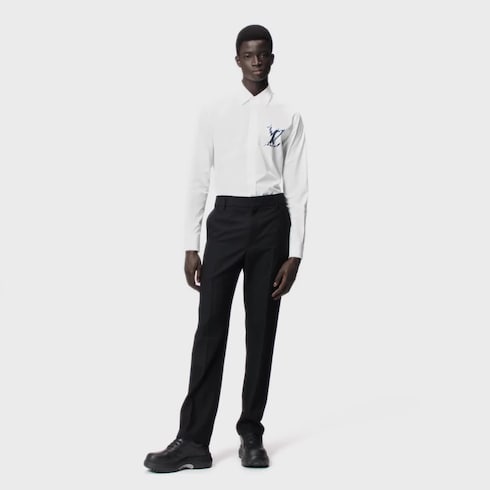 Esta calça cigarrete de alfaiataria em lã preta é uma peça essencial para montar looks mais formais. Ela traz um bordado de Flor do Monogram com um efeito sutil de relevo embaixo do bolso posterior. Com um paletó da mesma linha, esta peça compõe um costume elegante de ar contemporâneo.