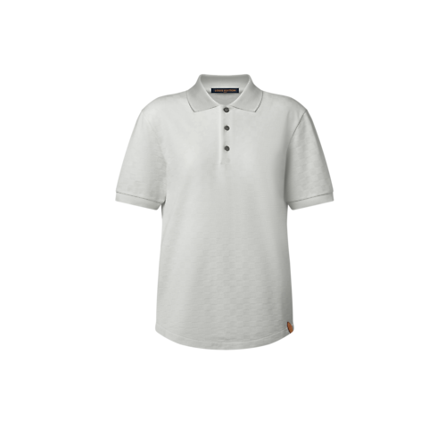Esta camisa polo de mangas curtas em piquet de algodão e seda brilhante proporciona maior leveza e respirabilidade. É valorizada pela padronagem Damier, revelada na trama jacquard texturizada. Os botões são assinados com costura LV, enquanto uma aba de couro VVN na barra esquerda remete à tradição da Maison em artigos de couro. Este modelo atemporal adapta-se perfeitamente aos looks formais ou casuais.