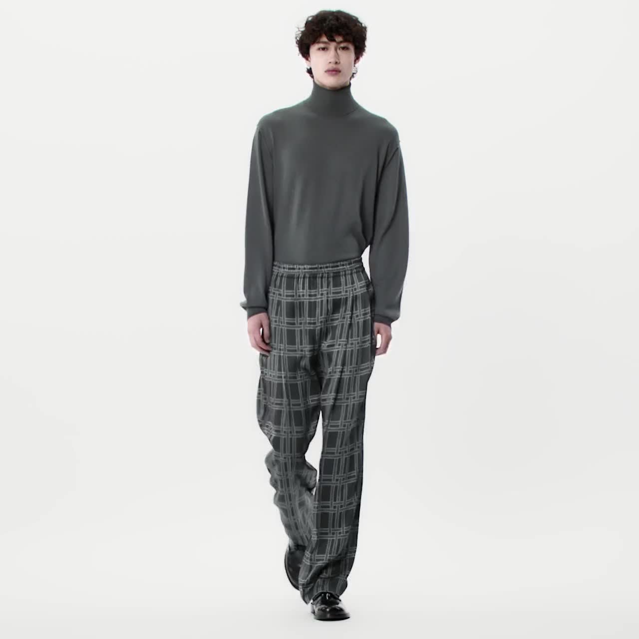 Sofisticada e descontraída, esta calça drapeada em seda brilhante é ideal para a noite. Sua silhueta fluida se destaca com o padrão LV Tangled em jacquard, que apresenta assinaturas sutis da Louis Vuitton. Junto com a camisa do conjunto, esta peça refinada compõe um look contemporâneo.