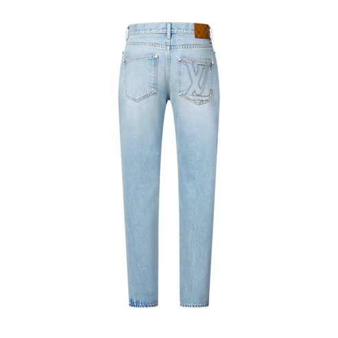 Esta calça jeans slim, confeccionada em dênim japonês premium, é uma peça básica valorizada com o savoir-faire da Louis Vuitton. Com sua lavagem azul-clara e design clássico, combina com qualquer look. Elementos exclusivos aparecem nos pespontos em marrom-tabaco, na assinatura LV bordada no bolso de trás e nas assinaturas em couro Nubuck no bolso de tickets e na cintura.