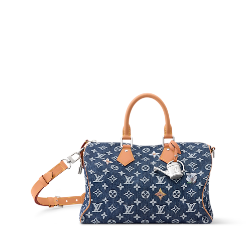 The Speedy 30 Bandoulière is made from Monogram Flowers Denim, accented with cowhide-leather trim and top handles. Its textured Monogram pattern, woven into the denim, is elevated by embroidered floral details, a summery feel highlighted by the watering can charm. Lined in ecru textile, the interior includes a dual flat pocket.