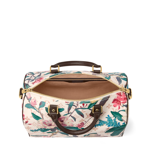 A Speedy 30 Soft foi criada para deixar suas viagens ainda mais leves, e esta edição Monogram Eden traz um toque botânico sofisticado. Inspirada na flora e na fauna, é confeccionada em canvas Monogram Dune e apresenta o icônico porta-chaves e tag de identificação em couro preto contrastante. O interior conta com um bolso com zíper para proteger seus objetos de valor e acompanha uma alça removível para carregar no ombro.