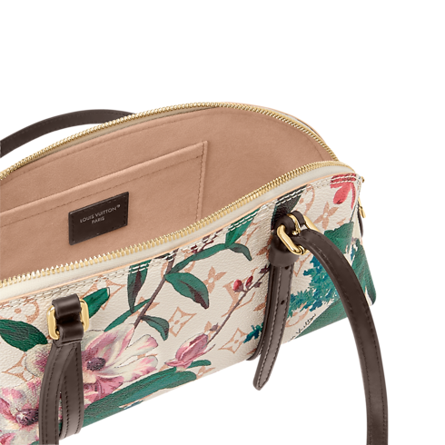 This Squire East West handbag belongs to the Monogram Eden collection. The elongated design is crafted from Monogram Dune canvas printed with a colorful floral pattern and is adorned with a signature gold-toned padlock. It is trimmed with contrasting leather straps, which lend a refined finish, and holds enough space to store daily essentials, including a smartphone.