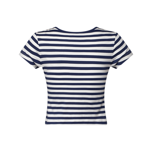 Códigos marítimos renovam esta camiseta ajustada com um ar gráfico e chic. Confeccionada em jersey de algodão macio com listras horizontais, traz o clássico visual de marinheiro, realçado por quatro pequenos botões dourados que fecham o elegante decote arredondado. Uma assinatura Louis Vuitton em letras cursivas finaliza o look com um toque sutil da Maison.