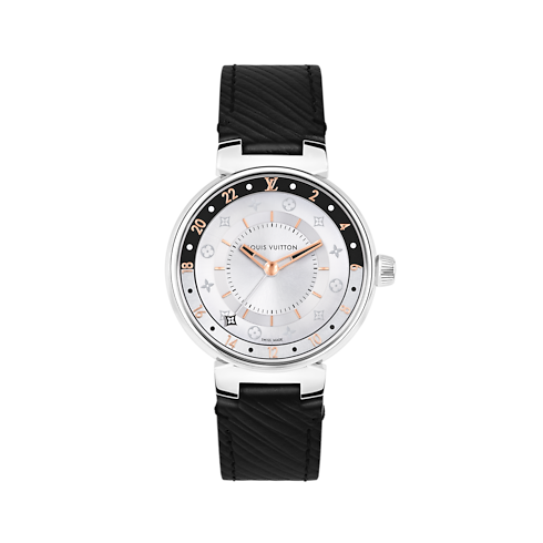 Feminino e sofisticado, o relógio Tambour Moon Dual Time Black & White apresenta uma expressão contemporânea da arte de viajar. Graças a um mostrador 24 horas, os horários local e de destino ficam claramente legíveis em seu atraente mostrador côncavo, com Monogram Flowers impressas que combinam com um ponteiro GMT em forma de flor que remete à tradição da Louis Vuitton. O design côncavo do mostrador e sua superfície escovada criam delicados jogos de luz.