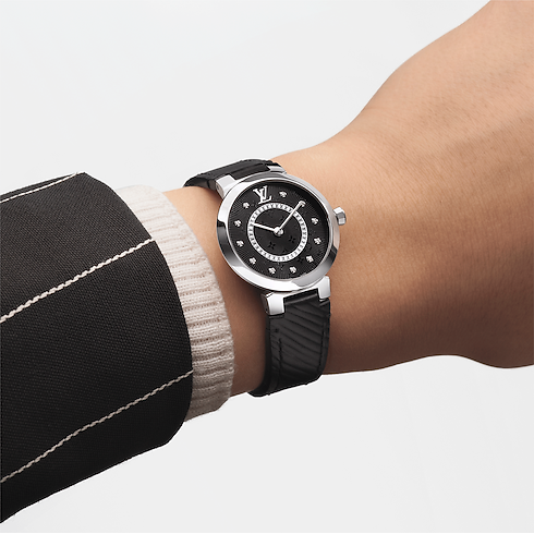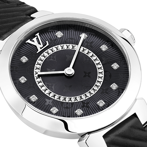 A coleção Tambour Slim apresenta um relógio mais compacto assinado com o icônico padrão Monogram da Louis Vuitton e delicados indicadores de diamantes. Símbolo de elegância, este modelo em preto é indispensável no guarda-roupa de toda mulher, pois é tão versátil quanto um vestido preto, exclusivo e atemporal.