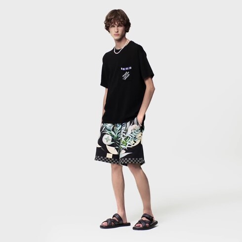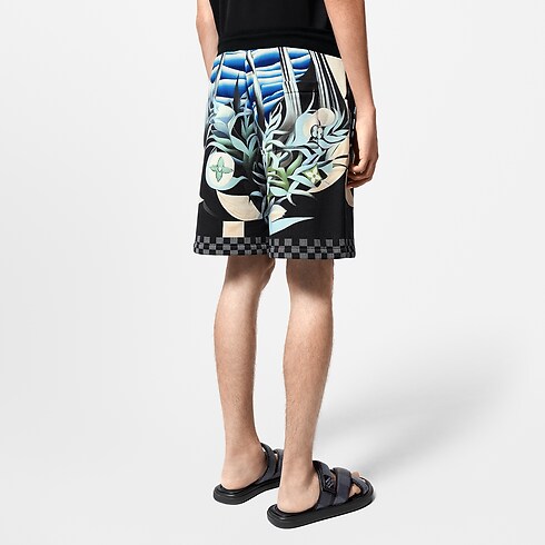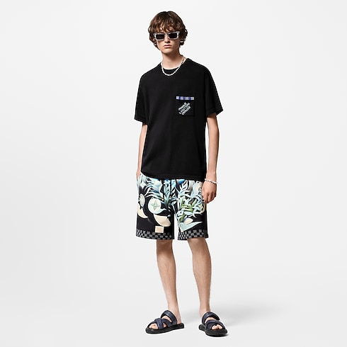 Este short de jersey de algodão tecnológico compacto é decorado com uma estampa Damier Pacific em tons de azul navy. Inspirada nas ilhas paradisíacas iluminadas pela lua, a estampa traz Flores do Monogram sutilmente integradas e um elegante acabamento Damier. Um suéter de mesmo estilo compõe um look casual e moderno com esta peça.