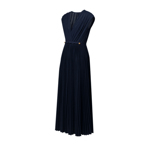 Vestido Plissado com Cinto Torcido