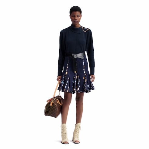 Detalhes elegantes realçam este pulôver atemporal com ar moderno. Confeccionado em malha macia de mescla de lã e cashmere, tem bainha canelada, além de costuras aparentes que conferem uma leve estrutura à modelagem descontraída. A gola casual é torcida sobre um dos ombros, criando um visual assimétrico, complementado pela icônica corrente com zíper da Maison.