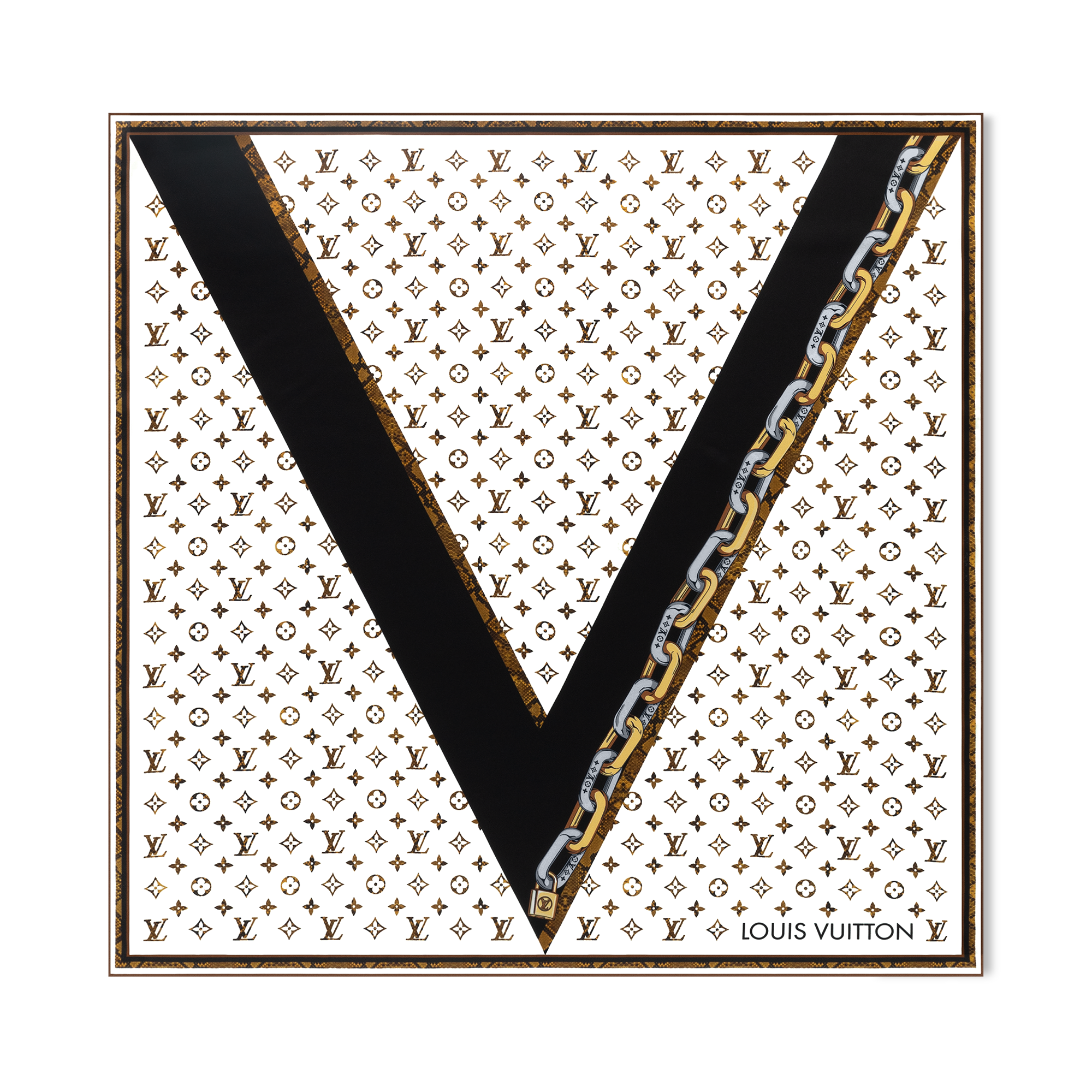 O carré Ultimate Monogram 90 cm homenageia a coleção de artigos em couro da Maison. Nele, ilustrações de alças e correntes formam um mix ousado de Monogram Flowers oversized. Essa peça moderna, que conta ainda com o Monogram como pano de fundo e bordas contrastantes, é perfeita para fãs da Maison.