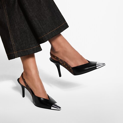 O pump Urban Twist com tira atrás é um modelo elegante e contemporâneo, que se destaca pelo decote gráfico em V e pela biqueira prateada com o emblema LV Circle. Esta versão combina couro de vitelo liso com o icônico canvas Monogram da Maison. Apresenta um salto alto e fino, além de uma tira traseira elástica para calçar com facilidade.