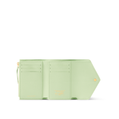 A carteira Victorine é reinventada no canvas Monogram Origine, criado exclusivamente para celebrar os 130 anos do icônico Monogram da Louis Vuitton. Esta edição vibrante é forrada em couro e apresenta vários compartimentos para acomodar cédulas, além de seis espaços para manter os cartões organizados e seguros. O botão de pressão dourado confere um toque final de elegância.