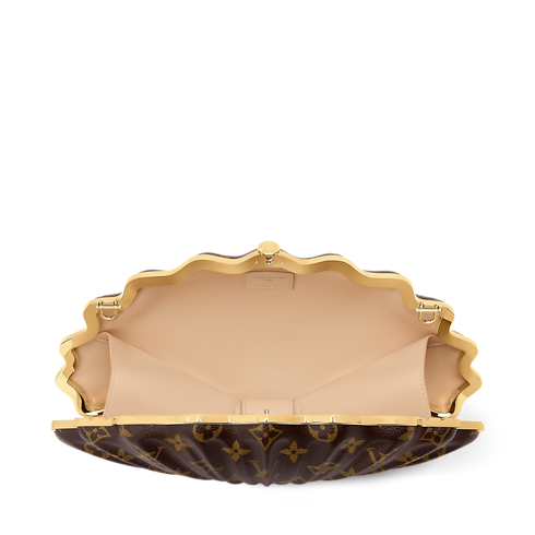 The Whisper handbag is a truly unique addition to any accessory edit. Taking the form of a shell, it is crafted from signature Monogram canvas with a smooth calfskin lining to keep valuables protected inside. The playful yet elegant design is adorned with a gold-toned chain and closes with a single button.
