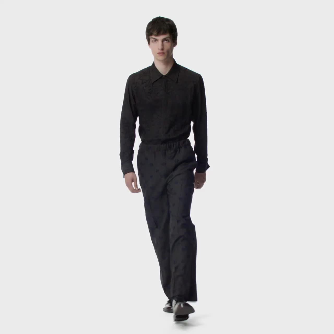 Elegante, esta calça com cordão apresenta um estilo mais despojado de alfaiataria. Confeccionada em um fino jacquard de mescla de lã e algodão, a peça apresenta a padronagem Monogram Eclipse com um acabamento texturizado. O modelo pode ser combinado com o blazer Napolitana para criar um terno descontraído.