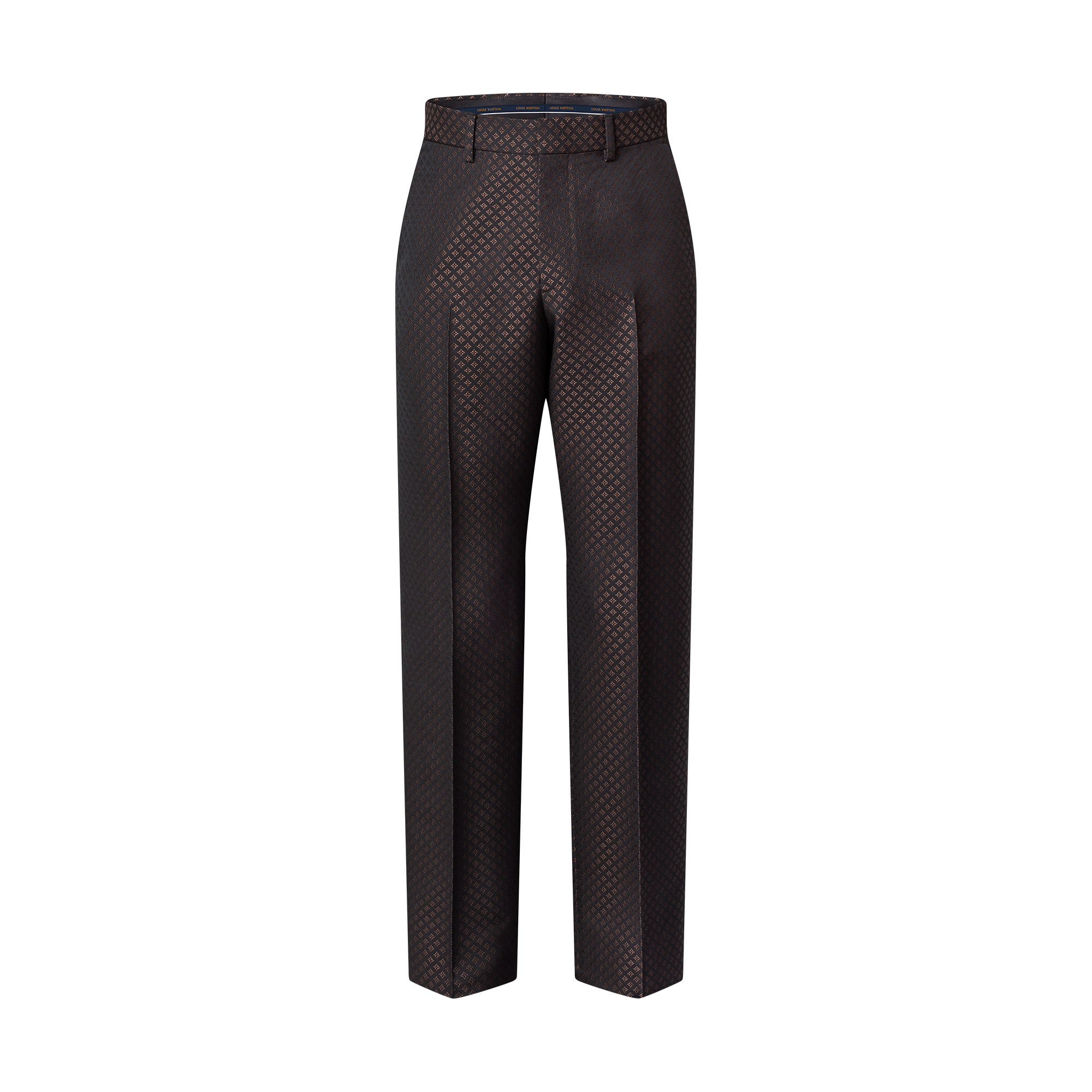 Este paletó de alfaiataria reinventa o smoking para o diplomata dândi do desfile Spring-Summer 2025. Em jacquard refinado de lã e seda com tons elegantes de marrom, a peça traz um padrão de Mini Flores do Monogram em tom sobre tom com brilho cobre. Apresentando abotoamento perolado e gola xale, compõe um terno sofisticado com a calça cigarrete do conjunto.