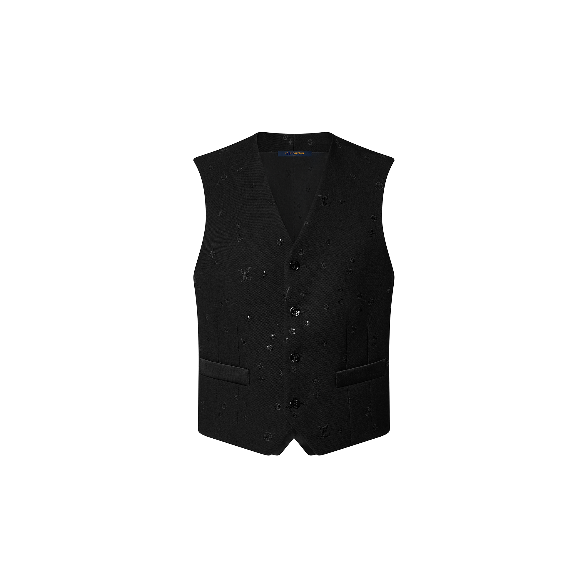 Uma peça essencial para ocasiões elegantes, esta calça de smoking de lã com uma faixa de cetim em cada perna traz um toque contemporâneo ao discreto padrão LV Starry Night. Quando combinada com o paletó e o colete mid-layer da mesma coleção, compõe um look noturno impactante.