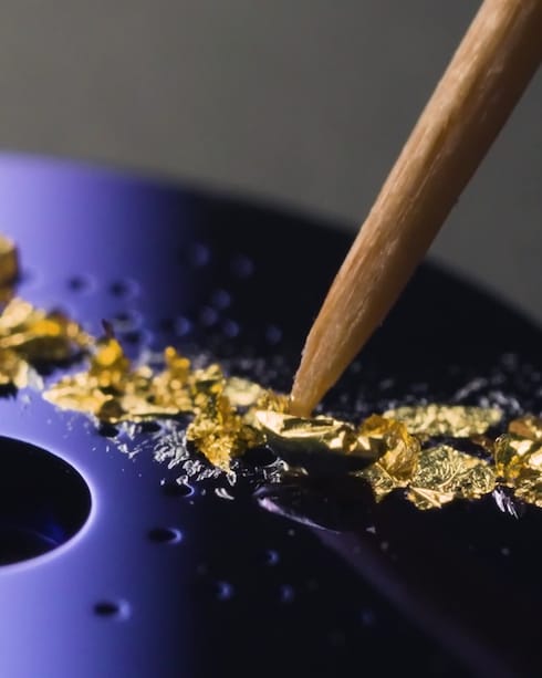 Fabricado e finalizado na La Fabrique des Boîtiers, o estojo Tambour Taiko combina uma silhueta escultural e uma construção azulada obtida através do processo exclusivo de oxidação térmica da De Bethune. Um aro gravado com as doze letras de Louis Vuitton, presilhas de platina e uma coroa detalhada enriquecem a extraordinária demonstração de virtuoso savoir-faire.